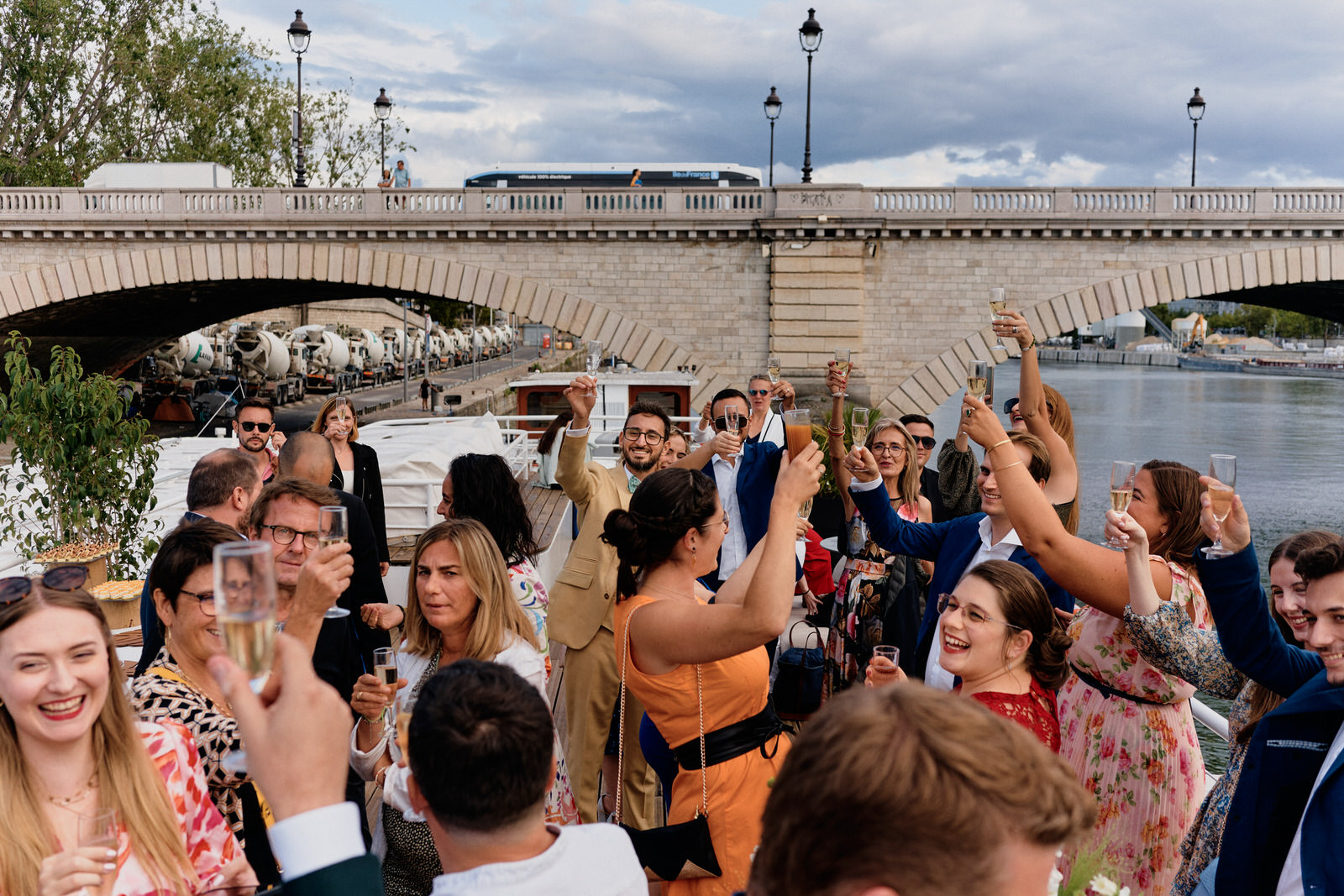 Une fois tout le monde arrivé, on a largué les amarres pour une petite croisière sur la Seine. Une jolie balade pour découvrir Paris autrement que depuis ses rues. On t’embarque avec nous découvrir la vue dont on a pu profiter pendant le vin d’honneur !